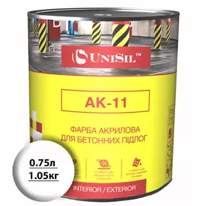 Акрилова фарба для бетонних підлог Unisil АК-11 Біла 0.75л /1.05кг, Белая 0.75л/1.05кг