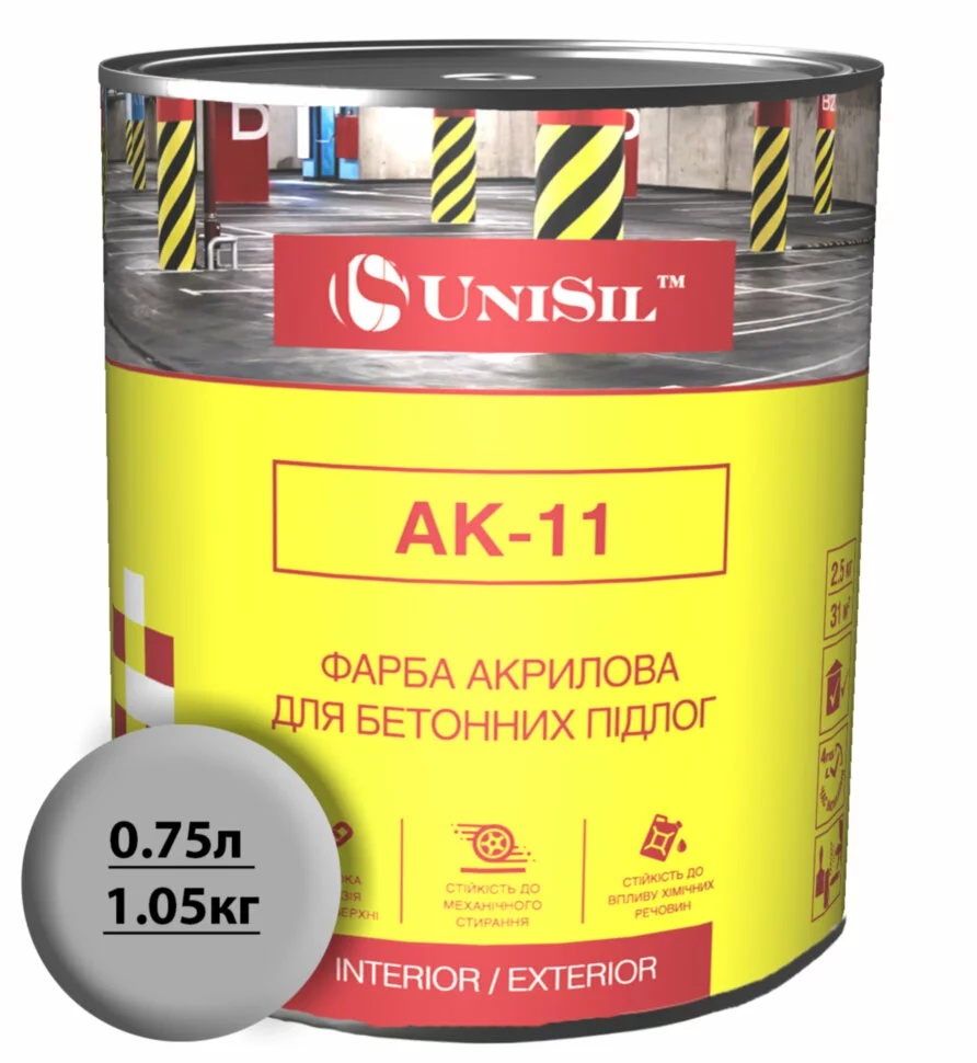 Акрилова фарба для бетонних підлог Unisil АК-11 Сіра, 0.75л /1.05кг, Серая, 0.75л/1.05кг